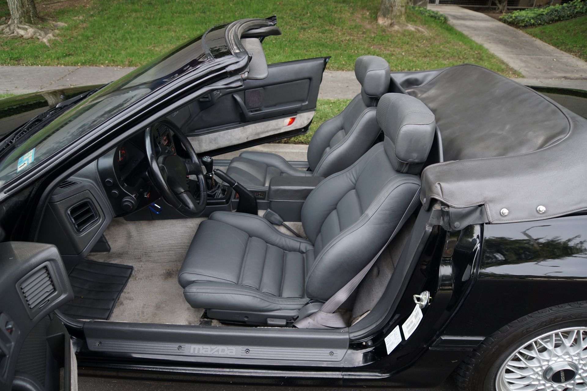 West Coast Classics are proud to present an exceptional barn-fresh (garage really!) find of this rare long time family owned and fully loaded with factory options 1988 Mazda RX-7 Convertible with its original Twin Rotary engine and 'Black' color paint with a 'Light Gray' full leather interior, a matching 'Black' convertible top and tonneau cover, a 5 speed manual transmission, original 55K miles and fully loaded with factory options including the leather package: