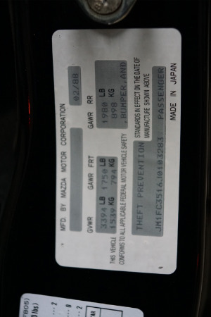 This car was purchased new by its original and only family owners at 'Eddie Cress Mazda' of Mission Hills, CA on 5/7/1988 and the car was always serviced at the same dealership for many years, until the car was brought by the family to Arizona in 2007 where it was then serviced at 'Thunderbird Automotive'of Surprise, AZ before returning to southern California in 2015. The car will be sold with its original owners manuals and service history and the car was recently serviced at 55,548 miles at 'Rick's Japanese Car Care' of Thousand Oaks, CA.