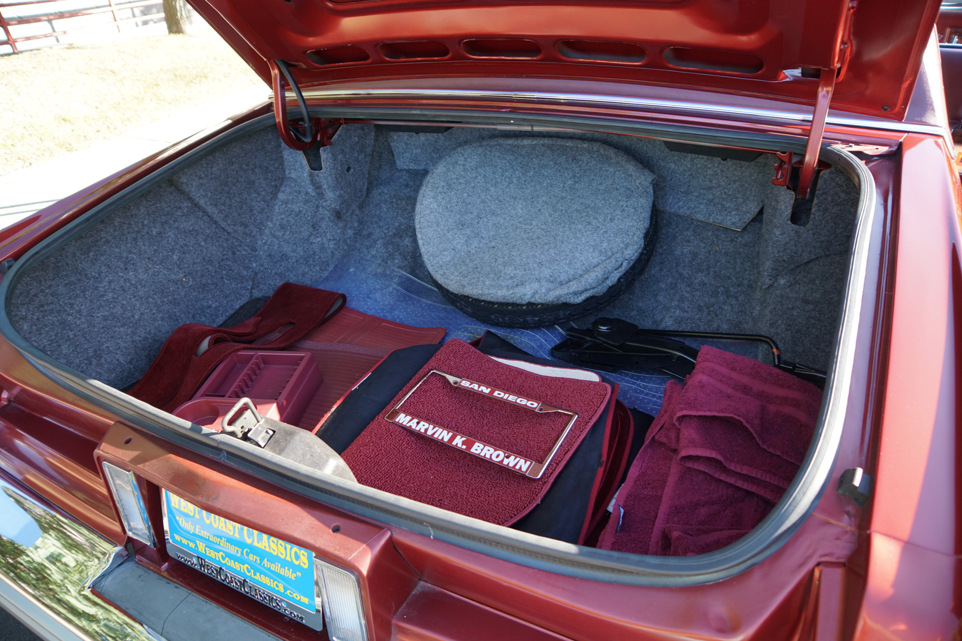 In addition to the previously mentioned features of the Brougham d'Elegance, the special edition model, option code V4S, had a specific interior trim design including tufted multi-button seats, three overhead assist handles, six-way power passenger seat adjuster, illuminated driver and passenger visor vanity mirrors, rear sail pane reading lights, Twilight Sentinel, power trunk lid pull-down, and exterior/interior identification.