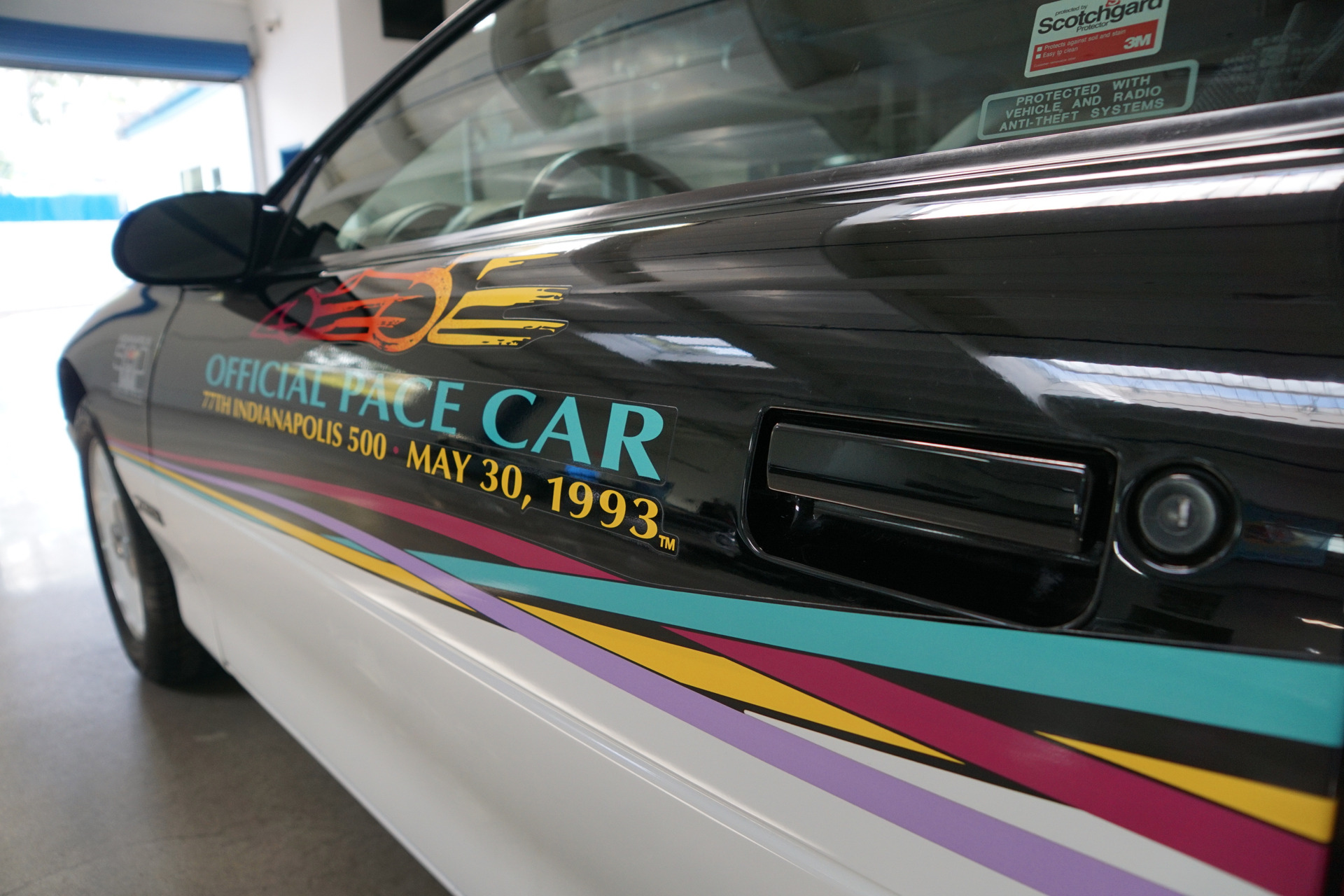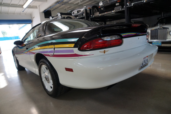 Only 645 official replicas of these exclusive cars were built for 1993 with the redesigned Camaro having being once again selected to pace the Indy 500, thereby being the first car to hold this honor for an unprecedented 4th time. Built with the 5.7L 275hp V8, Chevrolet also fitted the Pace Car with the Corvettes 4-speed automatic transmission, as well as assorted safety features and every available option for the model year, including air conditioning, T-tops and a CD player. The '93 pace car was driven at the track by Chevrolet general manager Jim Perkins, who had previously driven the 1990 Beretta. Only 645 Camaro Z28 Indy replicas were built, with 125 of those used for parade duty at the speedway.