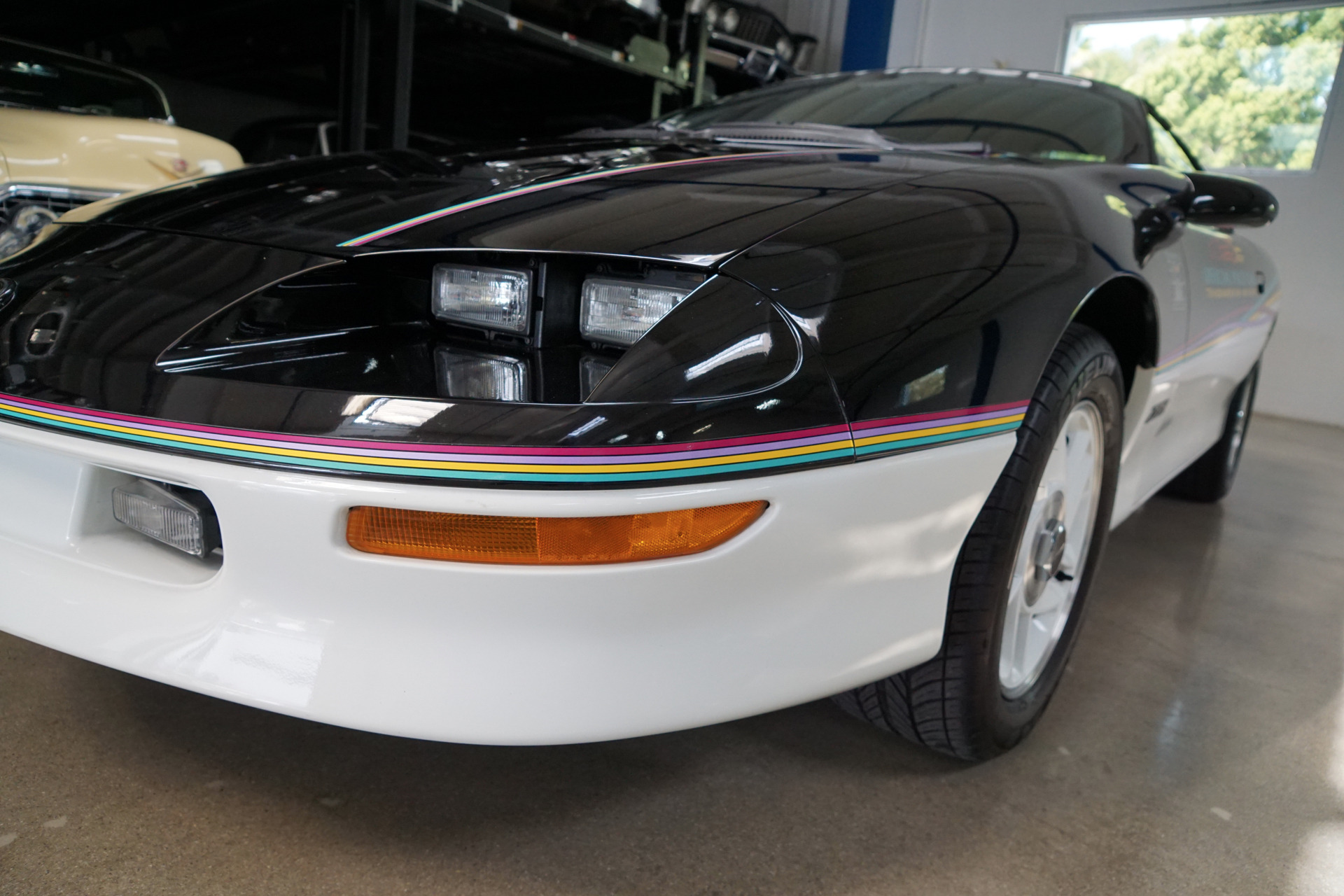 This 1993 Chevrolet Camaro Z28 Pace Car is a rare find on a number of counts. It's well equipped for inspired driving, sports a look all its own - with a very eye-catching two-tone paint job - and has been rarely driven, with only 9k obvious and believed to be original miles. You don't need more than a quick glance to see this is one uncommon Z28. The black and white exterior - with a white foundation extending to just below the height of the tires before transitioning into jet black above - combines with a series of intertwined, colored stripes on its rear flanks and official Indianapolis 500 pace car decals on its doors and front fenders to proclaim its distinctive, racing-inspired lineage. Unlike a lot of cars that feature convertible or removal tops, this is one that retains its visual impact both with its T-tops in place or in open air configuration.