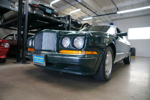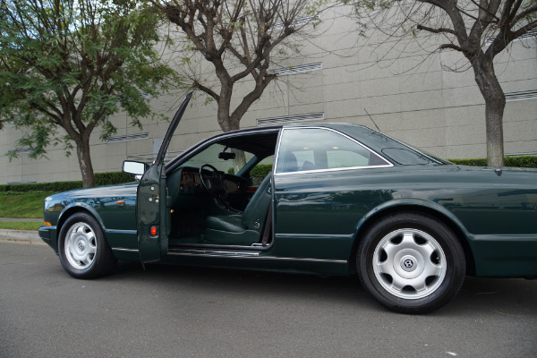 West Coast Classics are proud to present an absolutely stunning and exceptional example of this gorgeous original owner 1994 Bentley Continental R Coupe with coachwork by 'Mulliner Park Ward' with only 8,783 (yes, eight thousand seven hundred!) original miles in it's original and rare highly desirable classic Bentley color of 'Racing Green' factory color paint with and even rarer matching all 'Spruce Green with Green Piping' Connolly leather hides piped in 'Green' with 'Green' carpeting and matching original Rolls Royce/Bentley 'Spruce Green' sheepskins! A rare homage to Bentley's legendary racing history in the form of a modern day supercar and indeed both the most expensive and fastest production car in the world of it's day!
