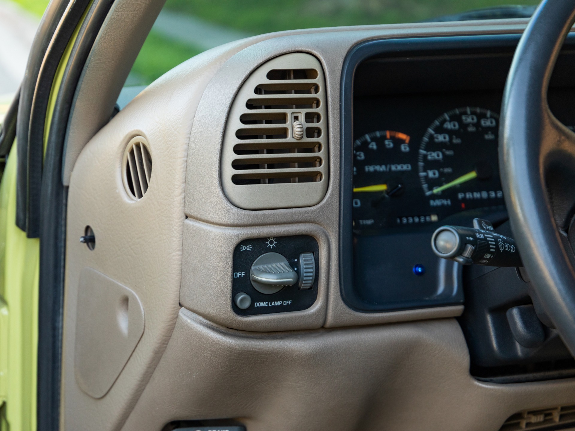 The finish looks factory, including all the door jambs, trim surrounds, lift gate and tail gate, and inset panels. The paint code accompanies it in case you ever get a scuff. A new grill and tucked front bumper were installed, along with all new rubber seals, a new windshield, and new rear seals, The end result is a basically new Tahoe that drives, rides, handles, and performs like it was 1996 all over again! Air is ICE cold, heat and defrost all work, all of the lights work as they should, all of the gauges work except the trip meter, the power windows and locks work, rear hatch release works, interior lights work. If you want to have the cleanest car show cruiser that can double as a real-world daily driver too, this is the one for you!
