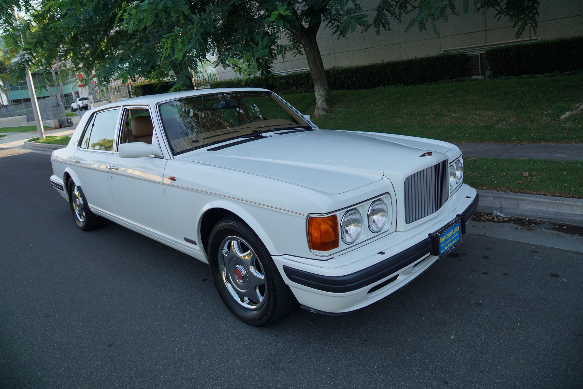 West Coast Classics are proud to present an absolutely stunning and exceptional example of this low production and gorgeous late model 1997 Bentley Turbo R (Long Wheel Base) sporting sedan with only 46K original miles and in a very striking and stunning color combination of 'Acrylic White' factory color paint with 'Tan' Connolly hides with original Bentley lambswool floor rugs!