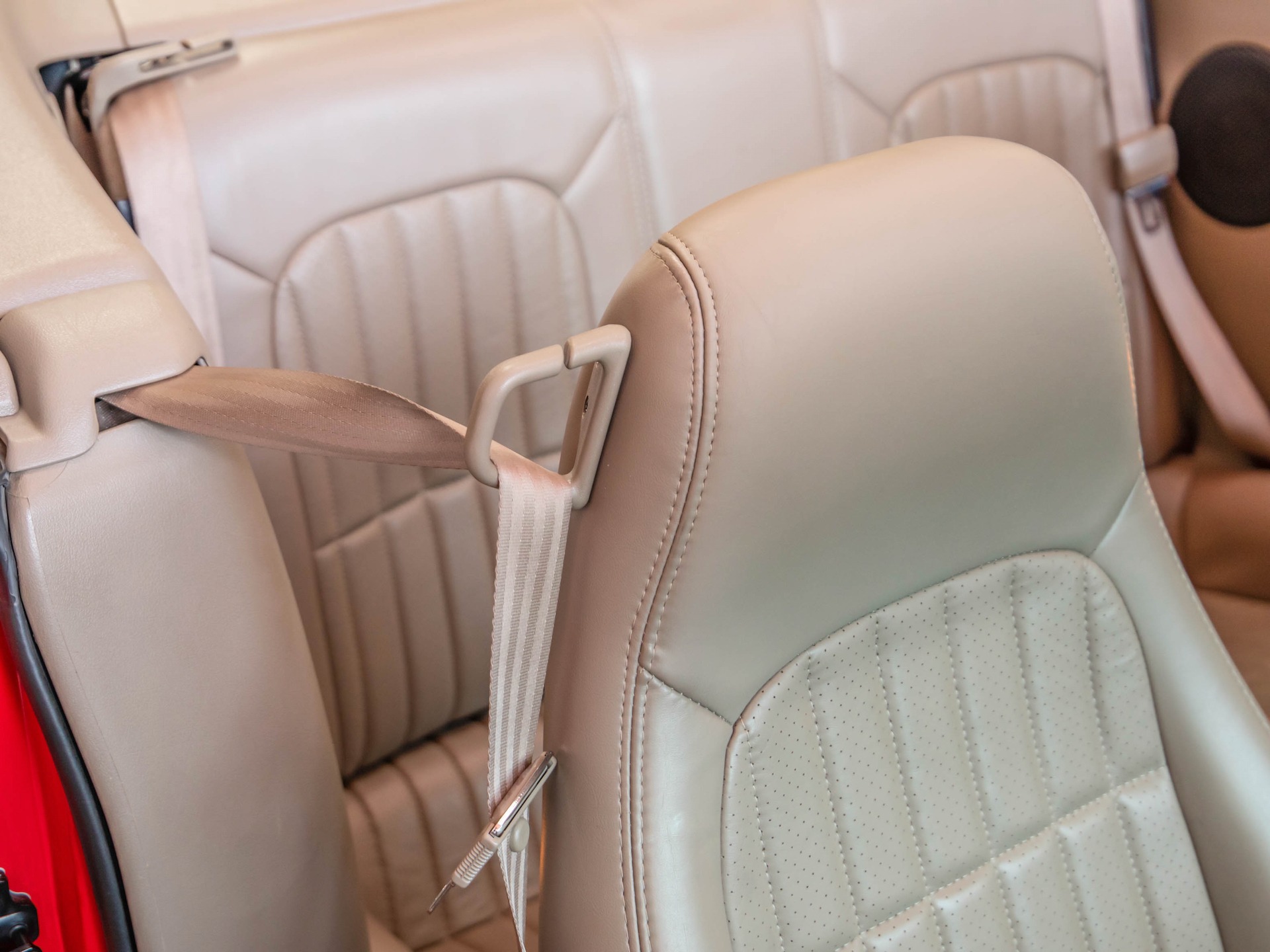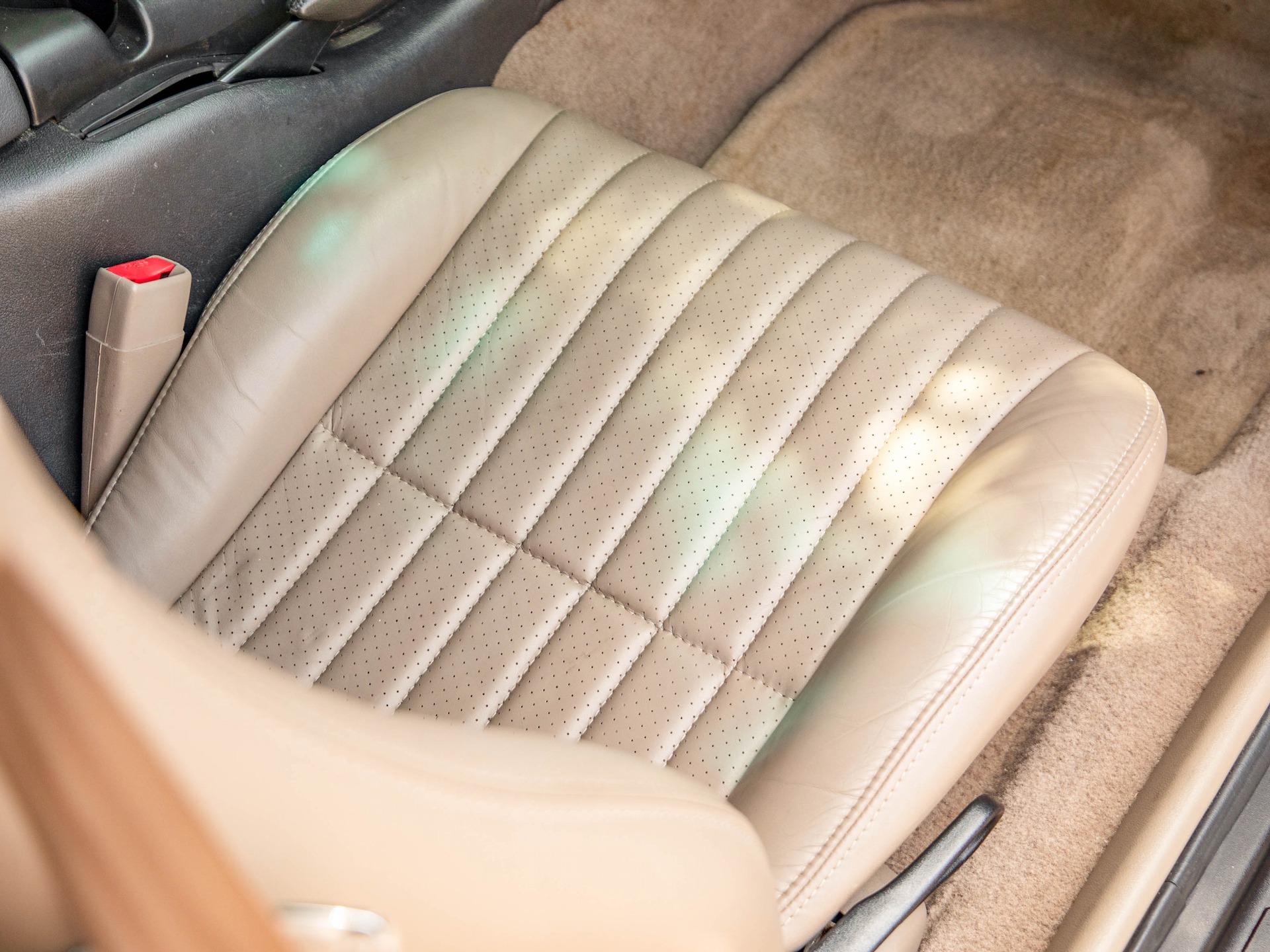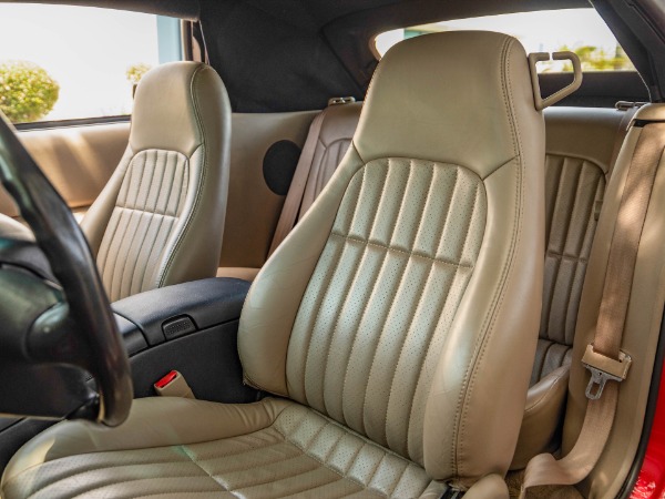 Always garaged with only one small bumper incident requiring repair - always owned and driven by it's mature original owner - never abused - babied all the way! The original factory 'Bright Rally Red' paint is in absolutely beautiful condition and the 'Natural Beige' leather interior is also in exceptional condition throughout. The car has a matching leather wrapped steering wheel and every option works as it should including the ice-cold A/C. The original matching Tan convertible soft top with a glass rear heated window is also in great shape with no signs of wear!