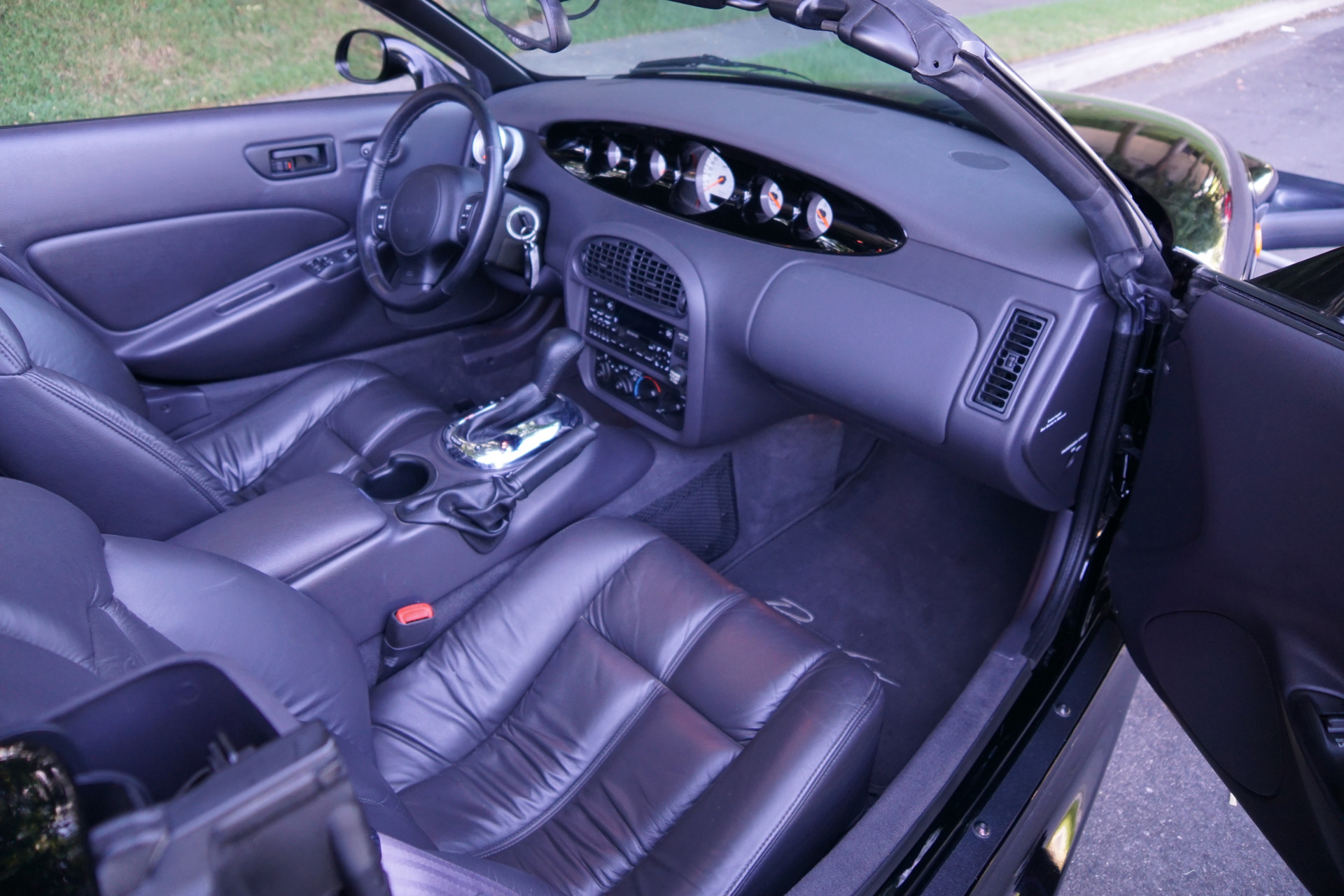 The original and highly striking 'Prowler Black' Clear Coat factory color paint is in absolutely outstanding condition and the 'Agate' interior with 'Agate' leather bucket seats and a matching 'Black' soft top are also in as immaculate condition with virtually no signs of any wear and all the options and gauges are working as they should including the ice-cold A/C. This well maintained and extremely low original 5K mileage example runs strong, the transmission shifts smoothly through all the gears, there are no oil leaks and the temperature always remains cool - drives and looks exactly like a virtually still brand new vehicle with such low miles should!