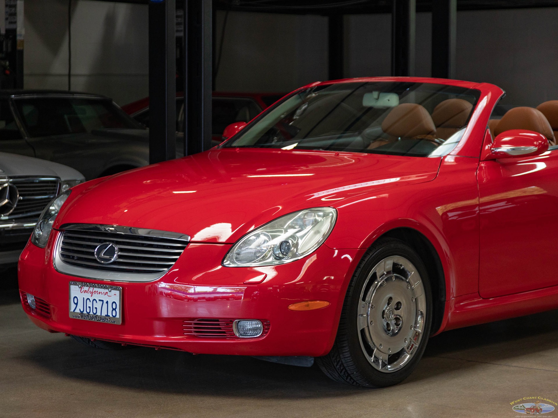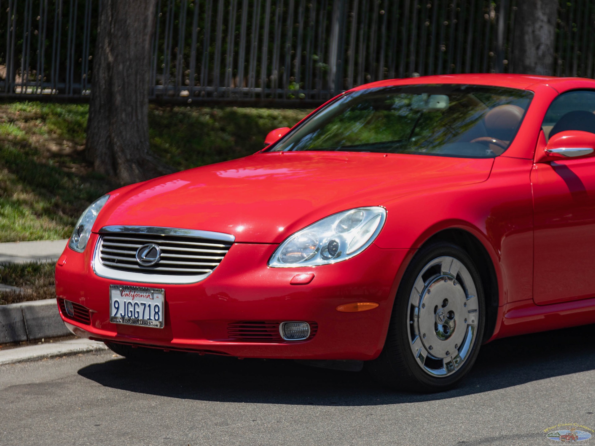 ORIGINAL SOUTHERN CALIFORNIA 2002 LEXUS SC430 WITH 29K ORIGINAL MILES IN 'ABSOLUTELY RED' WITH A 'SADDLE' TAN LEATHER INTERIOR.SOLD AT 'LEXUS OF BEVERLY HILLS' & PRIMARILY ALWAYS DEALER SERVICED WITH RECENT SERVICE HISTORY AT 'LEXUS OF BEVERLY HILLS', OF BEVERLY HILLS, CA.