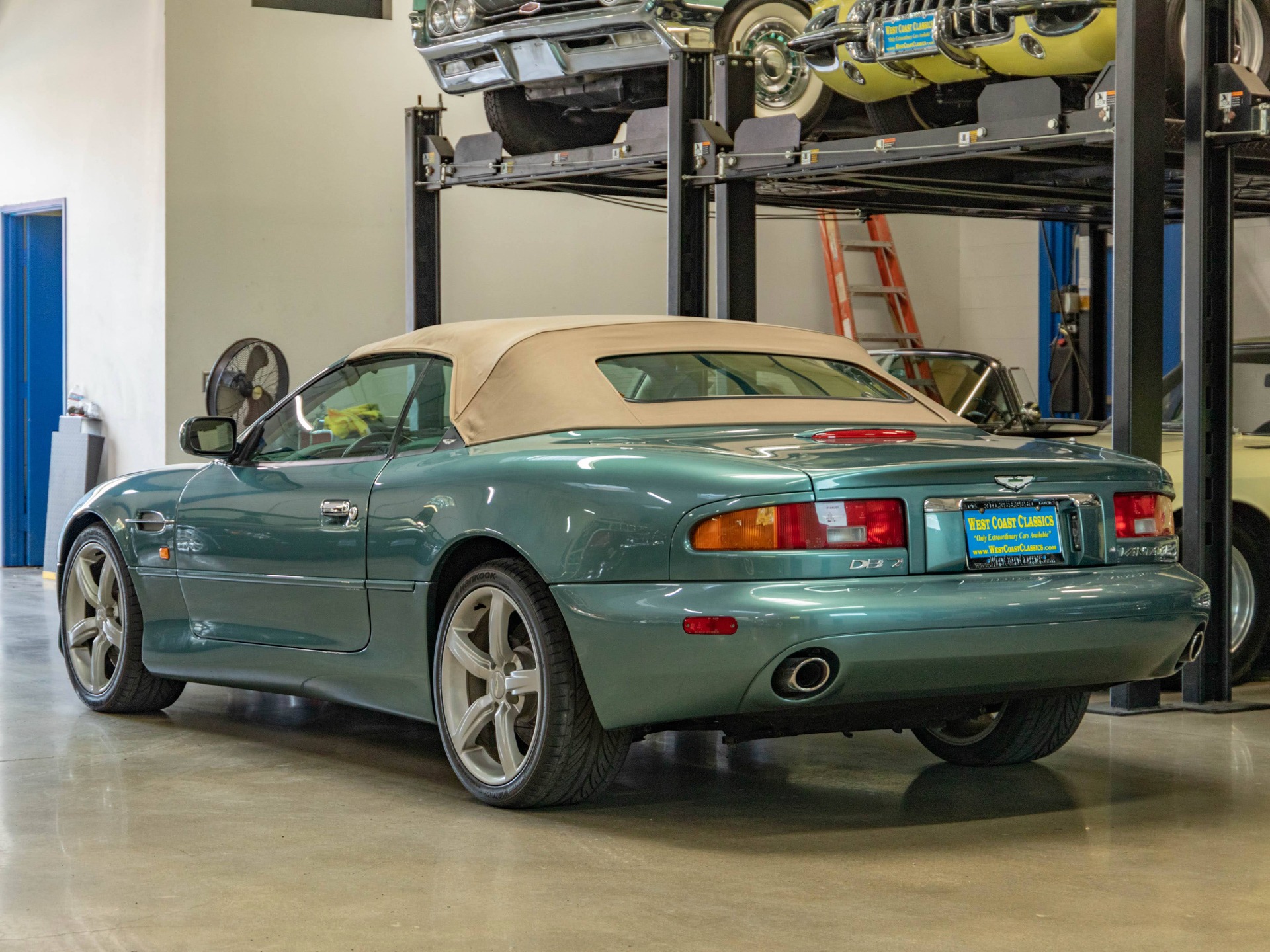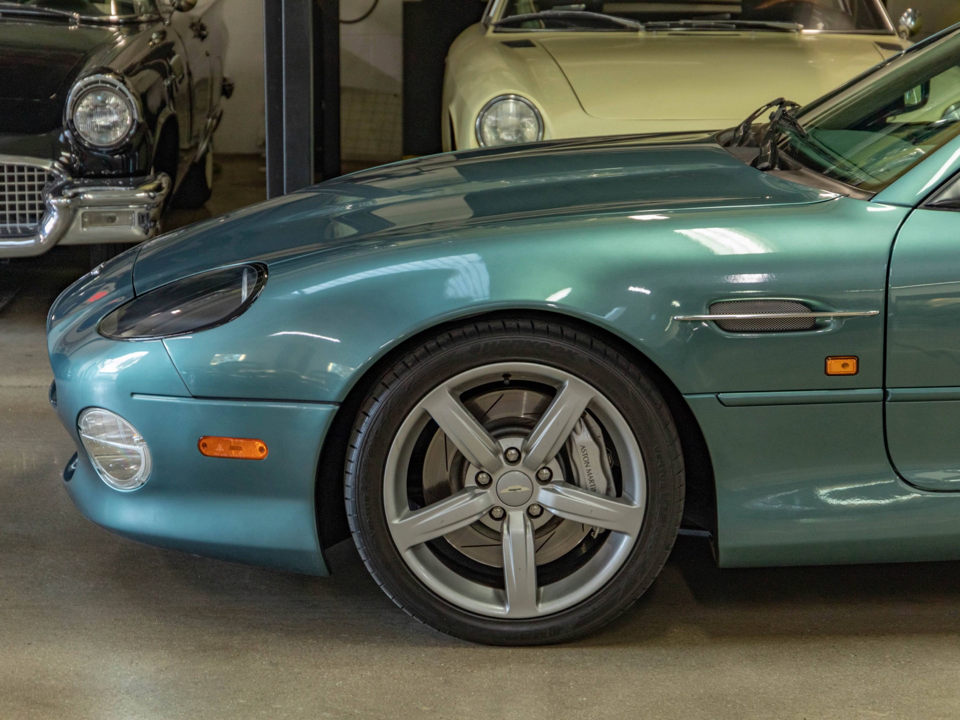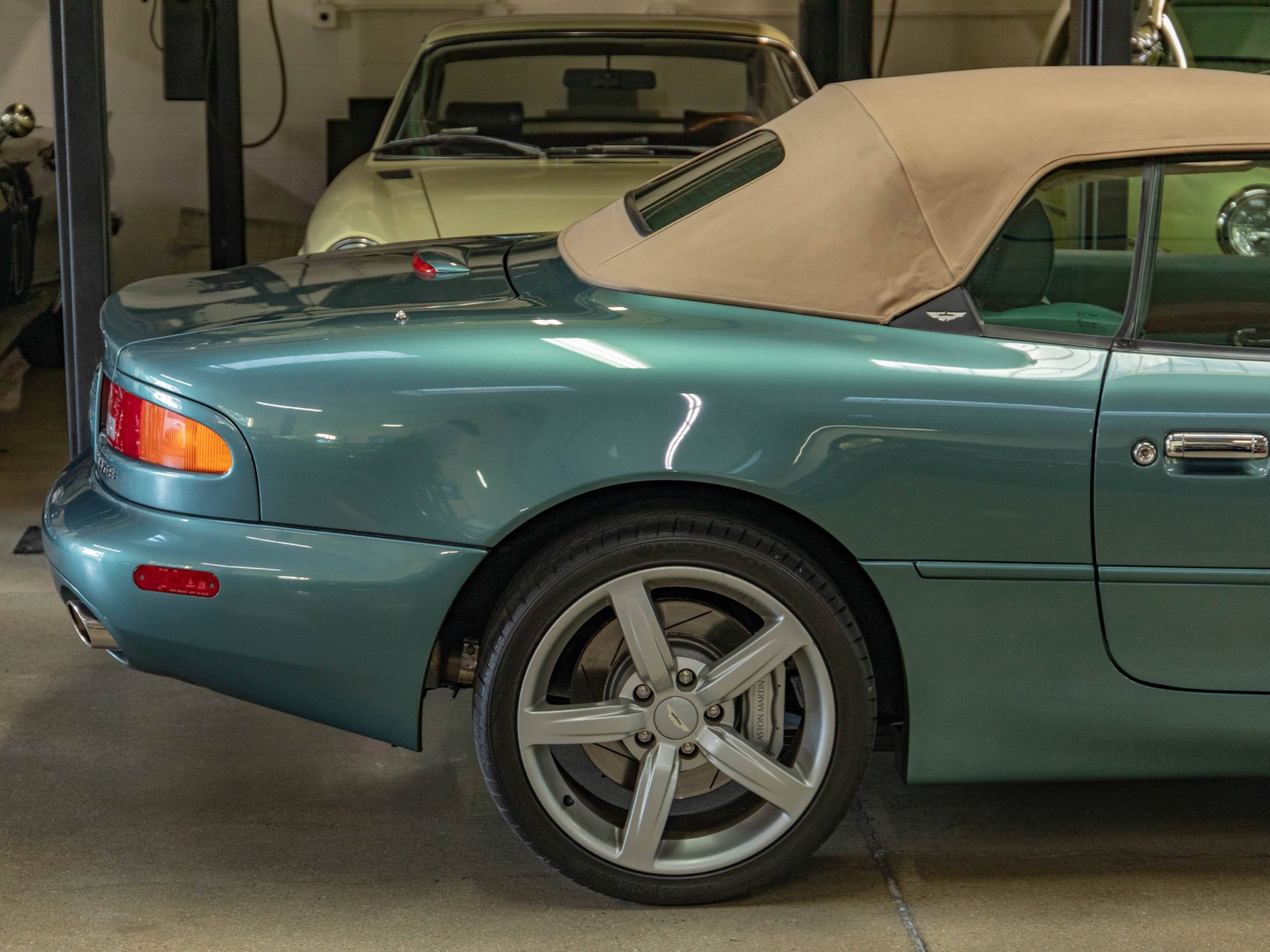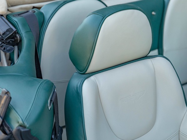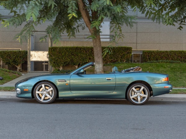 West Coast Classics are proud to present an exceptional and rare and collectible example of this 2003 Aston Martin DB7 Vantage V12 Convertible with a low original 14K miles in a gorgeous and very desirable color combination with a power soft top, factory alloy wheels and beautiful doeskin leather seats in a highly striking matching two-tone 'Green & Parchment' leather interior and and matching Green tonneau cover!