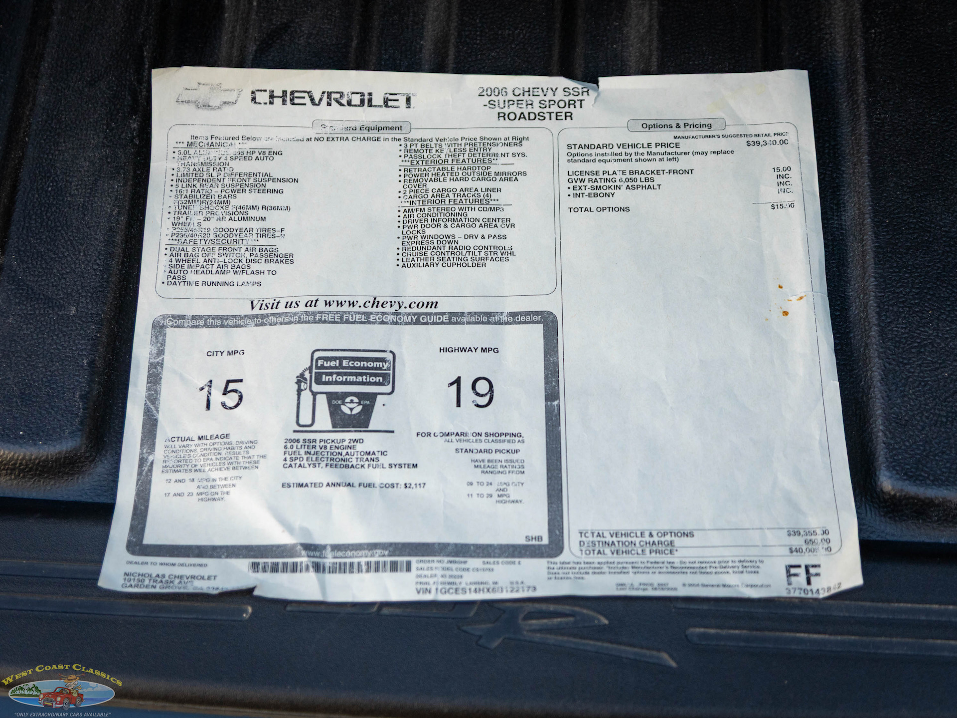 West Coast Classics are proud to present an absolutely stunning and exceptional example of this original southern California owner and always dealer serviced since new, last year of production 2006 Chevrolet SSR (Super Sport Roadster) with the 6.0L LS2 V8 engine in its original factory 'Smokin' Asphalt' color paint with an 'Ebony' leather interior and fully loaded with factory options and with only 64K original miles!